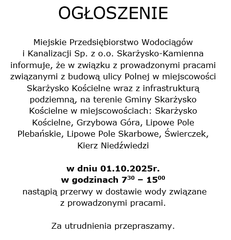 Ogłoszenie – Miejskie Przedsiębiorstwo Wodociągów i Kanalizacji Spółka z o.o.